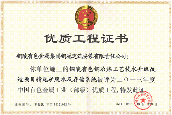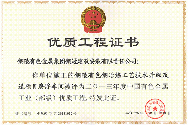 • 銅山磨浮—安裝優(yōu)質(zhì)工程獎(jiǎng)