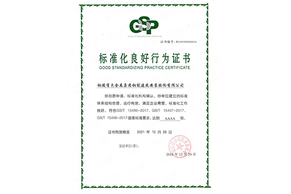 • 標準化良好行為證書